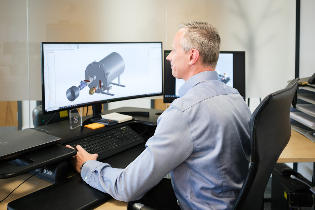 Behind the scenes photo of Nick Cole photographing members of the sales engineering team at Essco