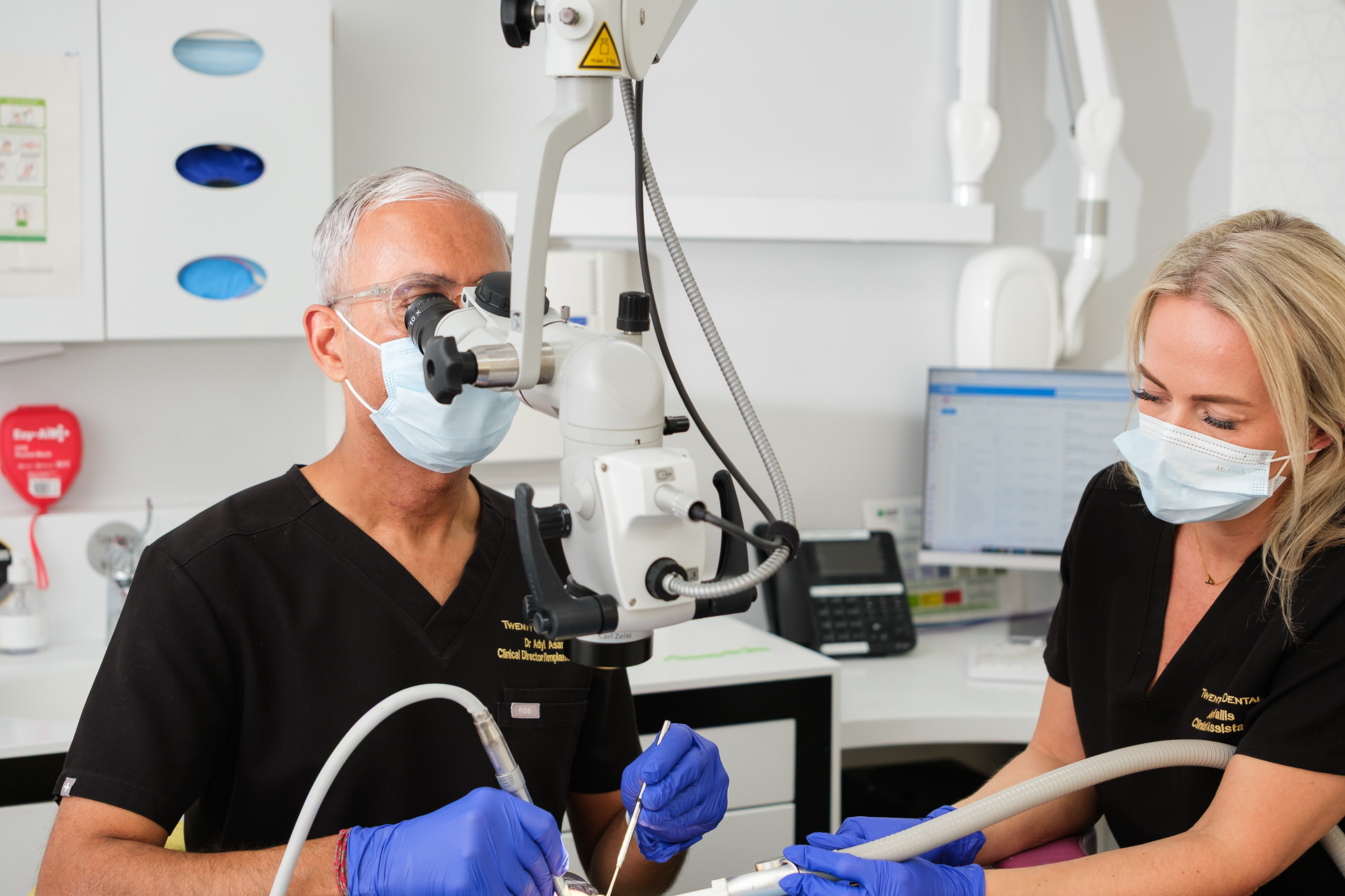 For the headshots, we developed the lighting style collaboratively with the clinic’s owner during the shoot, settling on a light grey background that complemented the team’s black uniforms. Several team members were also photographed in different uniforms to reflect their varied roles, giving the dental practice a flexible image library for multiple uses.